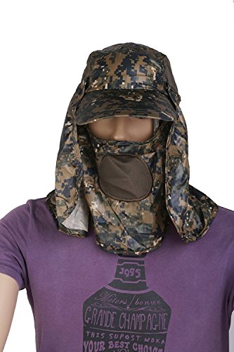 Hommy 保護帽子 防虫日よけ付き UVカット 迷彩 蚊バグビー虫除け 害虫駆除 養蜂 360度 日焼け防止 狩猟 釣り (デジタル迷彩)