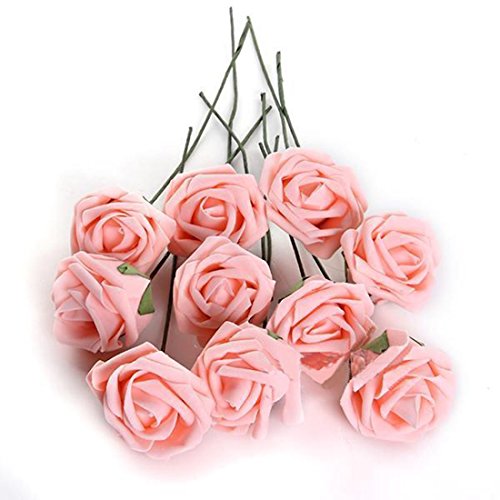 Hommy高品質 手作り ローズ バラの蕾 造花 ブーケ インテリア 本物そっくり きれい フラワーアレンジ 結婚式 お祝い 飾り ギフトなどにお勧め 10本セット (レッド)