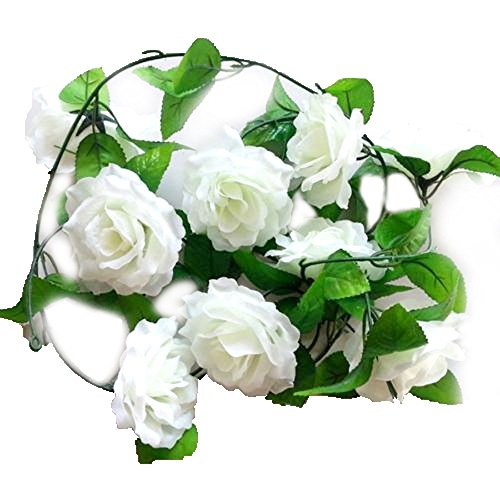 Hommy 花のつる, 人工ローズシルク花のつる 花輪 ホーム壁パーティー ウェディング 装飾 白