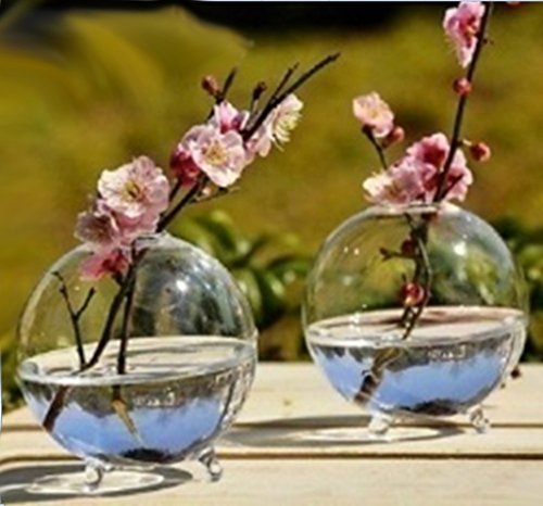 Hommy 2個入り お買い得 透明 ガラス製 3マイクロ足 花瓶 水耕栽培容器 テラリウム容器 ボール型 卓上置く ホーム 装飾