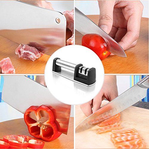 - ステンレス製で長持ちできる:美しく高級感を漂う高品質ステンレス製の包丁研ぎ器は耐久性があり、錆びにくく長期に使用できる!