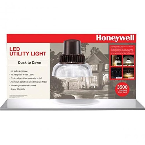 Illuminate your outdoor living space with the Honeywell LED Security Light. The 10.83x12.72x9.45 inch light is a simple and energy efficient way to give you peace of mind as well as enhance your home security. Perfect for lighting your driveway, back yard, patio and more. Constructed of aluminum and featuring a remington bronze finish, this LED Security Light is easy to install with built-in mounting bracket.