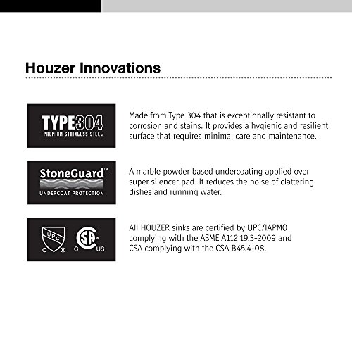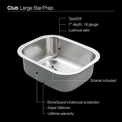 One Basket Strainer included. The Houzer CS-1607-1 Club Series Large Undermount Bar/Prep Sink is an attractive, functional stand-alone or a creative companion sink. Its compact size and simple, clean lines make them stylish and functional additions to any kitchen or bar area. This model is made of 18-gauge T304 stainless steel and bowl measures 13-inches by 16.5-inches by 7-inches deep. It features lustrous satin finish with highlighted rim, eXclusive SpecPlus Edges and StoneGuard undercoated over Super Silencer pad that helps reduce clattering sound of glasses and silverware, while eliminating condensation under the bowl. Includes mounting clips and template for added convenience. Meets ASME A112.19.3-2000, UPC and CSA standards and covered by limited lifetime warranty. Fits 21 inch cabinet. For over three decades, Houzer has been improving millions of kitchens across America and overseas, one sink at a time. Houzer offers over 100 sensational models in Stainless steel, Quartz Granite, Fireclay, Porcelain Enamel steel, and Copper to match any design from traditional to contemporary. Houzer believes that sinks can make your life in the kitchen easier and more enjoyable.