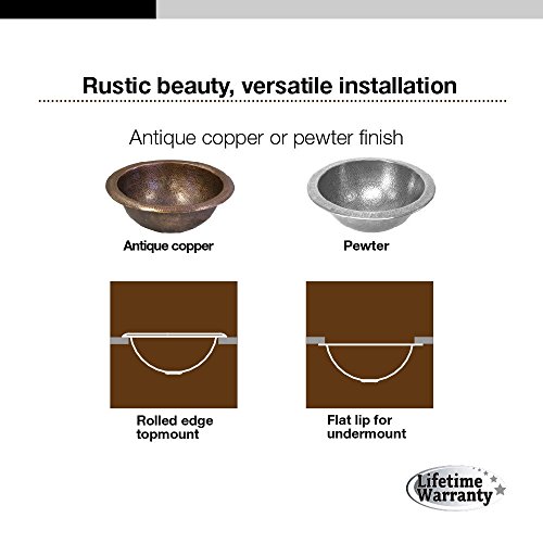 Self rimming. Houzer sinks complement your home and your lifestyle. Look to Houzer for a versatile range of both classic and modern sinks for any kitchen, entertainment area or lavatory. Our sink collection is a perfect representation of our unique passion for sink design and an ideal way for you to reflect your personal style in the kitchen. Each Houzer sink is covered by a lifetime warranty to the original purchaser against any possible defects in materials and workmanship. The Hammerwerks collection are hand hammered copper and pewter sinks that are a unique addition to your lavatory, kitchen or bar-prep areas. Hammerwerks products have a "living finish", meaning they will oxidize and develop a beautiful patina of varying hues over time and usage.