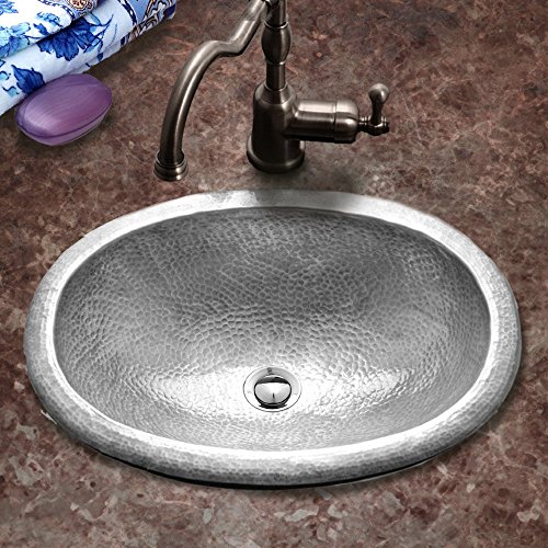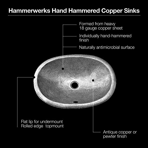 - 14-by-20-Inch oval hammered copper lavatory sink