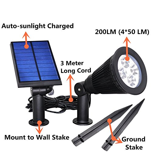 Pretty Bright Solar Spotlight,200 Lumen Output with long wire, shine up illuminating Garden, Driveway, Stairs, Flag, Path, Porch. (More information please feel free to contract us.). Specifications: