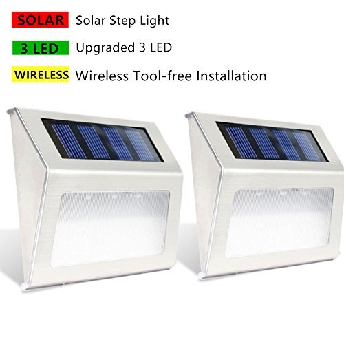 - [Pack of 2] HowFine Outdoor Stainless Steel LED Solar Step Light Wireless Super Bright Modern White Lamp for Deck, Staircase, Walkway, Patio, Garden, Yard, Patio