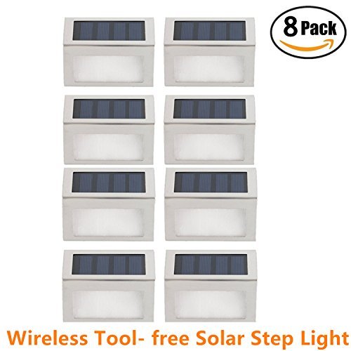 - [Pack of 8] HowFine Outdoor Stainless Steel LED Solar Step Light Wireless Super Bright Modern White Lamp for Deck, Staircase, Walkway, Patio, Garden, Yard, Patio