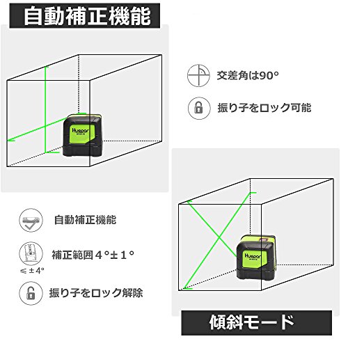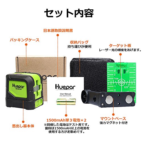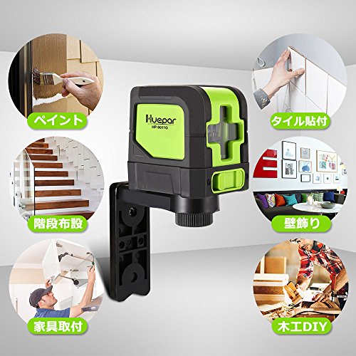 Huepar 2ライン グリーン レーザー墨出し器 クロスラインレーザー 緑色 レーザー 自動水平調整機能 高輝度 ライン出射角110° ミニ型