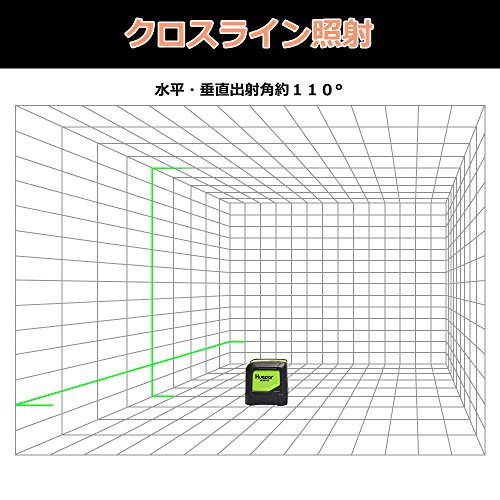 ◆視認性の高いのグリーンレーザータイプで、ライン出射角は水平ライン110°、縦ライン110°に達します。