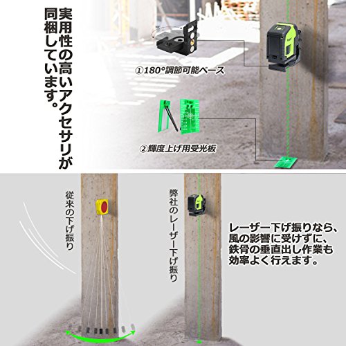 - 【下げ振りポイント照射可能】下げ振りポイント照射で、鉄骨垂直出しが出来ます。Hueparの3ポイント照射するレーザー墨出し器なら、風の影響を受けずに、鉄骨の垂直出し作業も効率よく行えます。