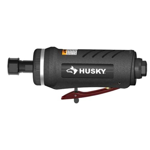 The new Husky air tool line in built to industrial standards for the professional user providing more power, less noise and longer life. This new Husky 1/4 in. Straight Die Grinder features a low weight housing with rubberized handle overmold for comfort. Precision bearings reduce vibration and spindle run-out and internal silencing greatly reduces tool noise. The tool operates at 20,000 RPM. Designed for deburring, polishing and grinding. Ideal for use in high volume applications where the large motor design provides fast material removal.