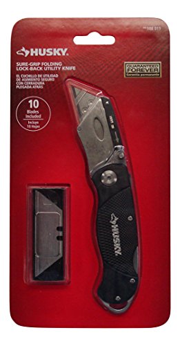 Includes 10 Utility Blades. Husky Folding Lock-Back Utility Knife comes with 10 utility blades that can lock in place for efficient cutting. The handle is crafted with aluminum for strength and features a folding design to help ensure safety.