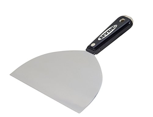 Guaranteed forever. Flexible blade with desired flex point for applying and smoothing compound and taping joints. Black & Silver joint knife with high carbon steel blade. Durable nylon handle with Hammer Head end for setting popped nails and screws as you work. Full-tang blade. Highlights: Guaranteed Forever High carbon steel blade individually ground, polished, mirror finished and clear coated Nylon Projection-Interlock handle with die cast metal nail setting end Full tang blade construction Blade measures 8" wide. Blade Material: High Carbon Steel Blade Type: Ground, Polished, Mirror finished, Clear Coated Handle Color: Black & White Handle Material: Nylon, Die-Cast Metal Handle Type: Projection-Interlock, Nail Setting End Product Weight: 5.3 lb/Pack