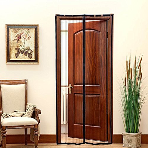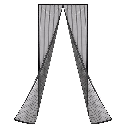 玄関網戸 虫よけ 断熱 自動式磁気カーテン ドア用メッシュ 取付簡単 ブラック 100×210cm