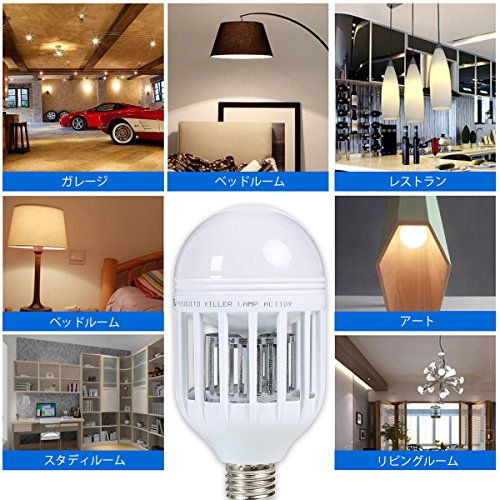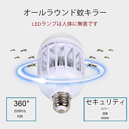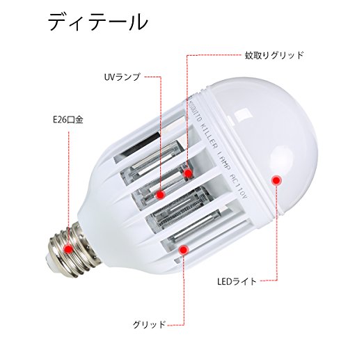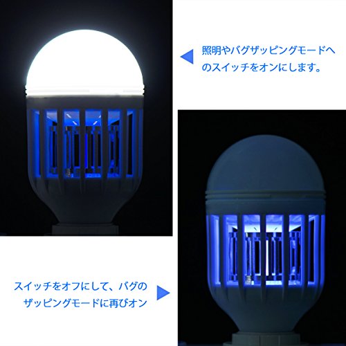 - LED電球は「色温度:6500K」、「全光束(明るさ):950ルーメン」とはっきりした明るさの 昼光色です。 本製品は点灯状態を3段階に変化させることができます。 ①LED点灯+蚊取りライト点灯 普段の照明と蚊取りを同時にできます。 ②LED点灯 普段の照明として使用できます。 ③蚊取りライト点灯 1Wで就寝中に蚊取りができます。