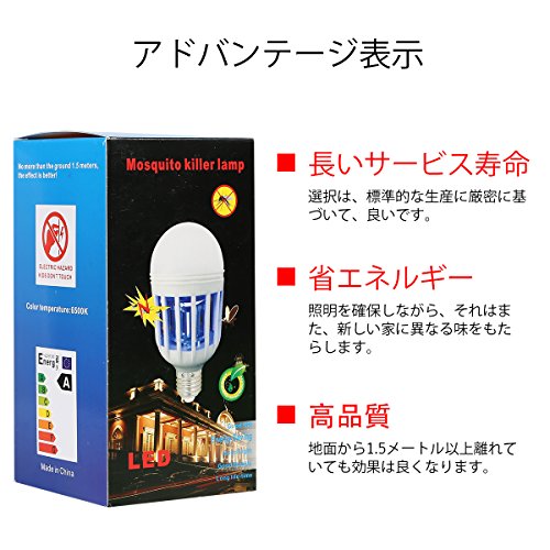 電撃殺虫器 蚊取り器 殺虫機 誘虫灯 LED電球 捕虫器 吸引式 虫除け UV蚊取り器 屋内専用