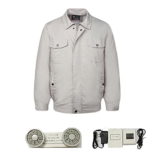 IDream 空調服 熱中症対策 作業服 ファン 扇風機 長袖 ワークウェア 現場 工事 空調服のみ/空調服+リチウムセット選択可能 グレイ 迷彩 (M-XXL) (グレイ・フルセット, L)