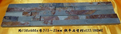 - 天然鉄平石を、石材専用接着剤で粘着した長方形自然風合い壁材♪