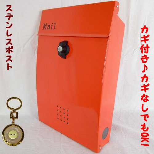 郵便ポスト 郵便受け メールボックス壁掛けオレンジ色 プレミアムステンレスポストpm134