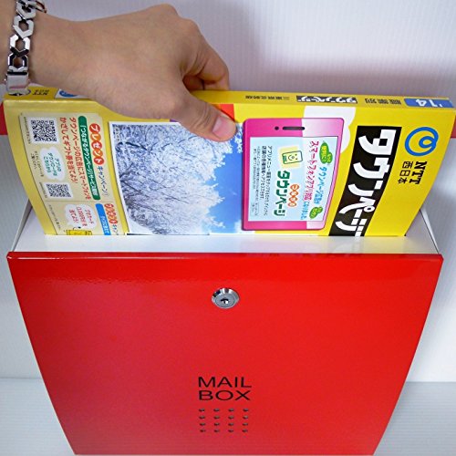 郵便ポスト郵便受け大型メールボックス壁掛け鍵付きマグネット付きレッド赤色ポストpm173