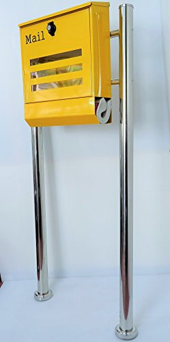 郵便ポスト郵便受け北欧風大型メールボックススタンド型プレミアムステンレスイエロー黄色ポストpm144s