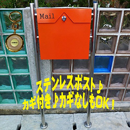 郵便ポスト郵便受けメールボックス大型メール便スタンド型オレンジ色ステンレスポストm152s
