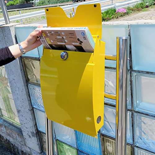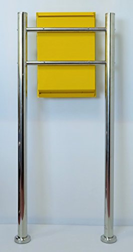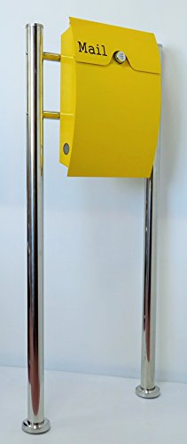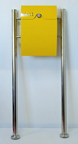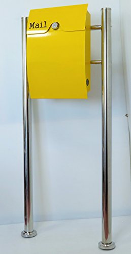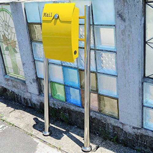 郵便ポスト郵便受け北欧風大型スタンド型ダイヤル錠付プレミアムステンレス黄色ポストpm163s