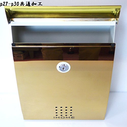 郵便ポスト 郵便受け メールボックス壁掛けおしゃれなチタン鏡面ゴールド色ポストp27