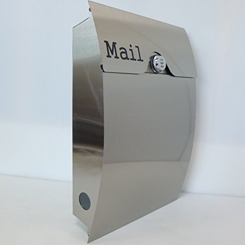 郵便ポスト北欧風メールボックス壁掛けダイヤル錠付きプレミアムステンレスシルバーステンレス色ポストpm161
