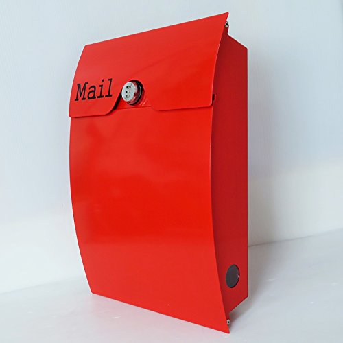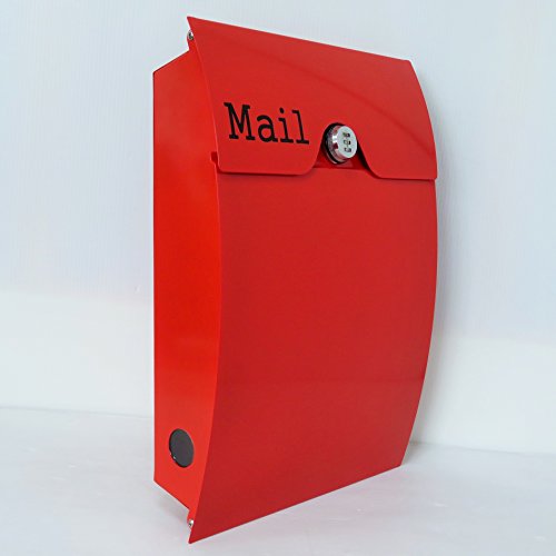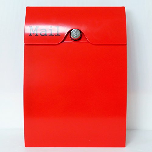 郵便ポスト郵便受け北欧風メールボックス壁掛けダイヤル錠付きプレミアムステンレスレッド赤色ポストpm164