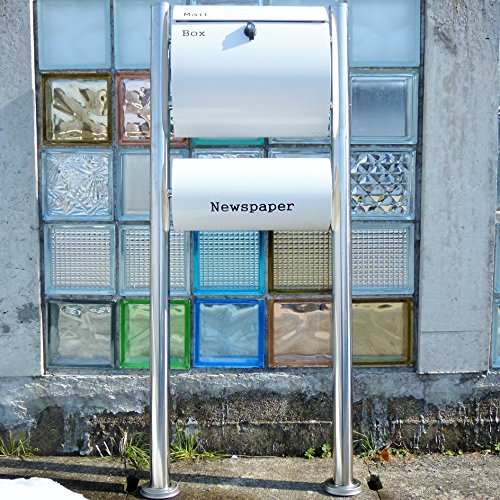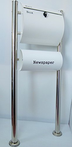 郵便ポスト郵便受け北欧風大型スタンド型プレミアムステンレス白色ポスト+新聞紙ホルダーpm064s
