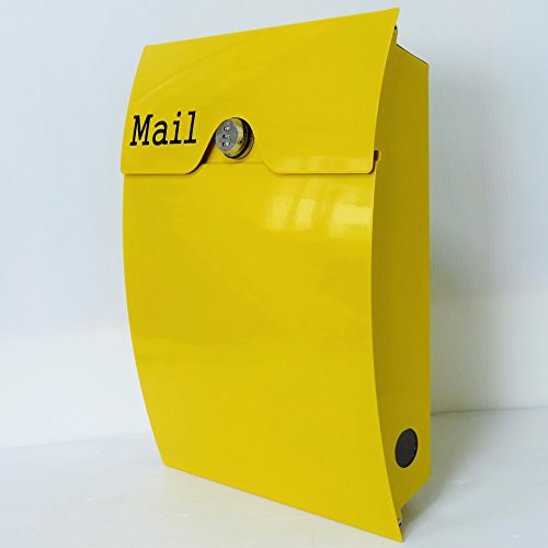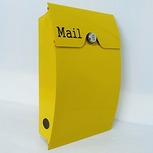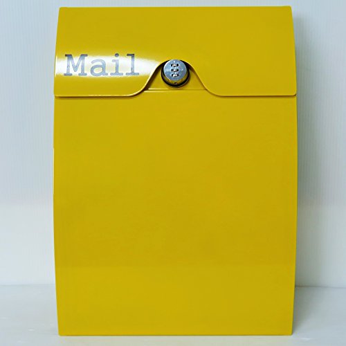 郵便ポスト郵便受け北欧風メールボックス壁掛けダイヤル錠付きプレミアムステンレスイエロー黄色ポストpm163