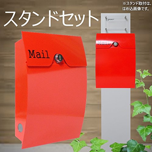 郵便ポストスタンド付 壁掛けダイヤル錠付プレミアムステンレス赤色ポストpm272s-pm164
