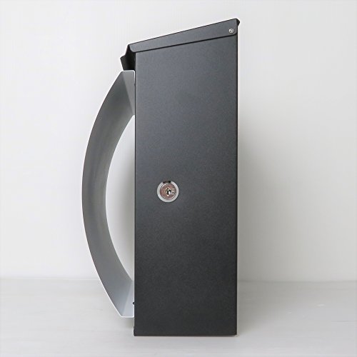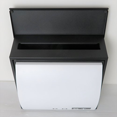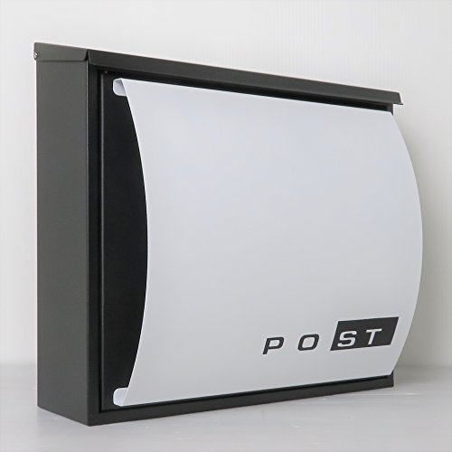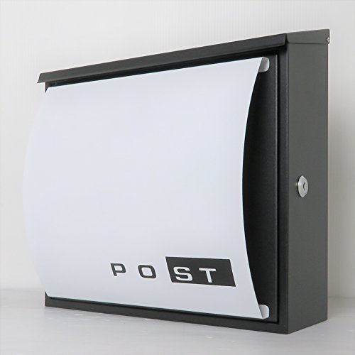 お洒落なモダンデザイン郵便ポスト:お蔭様で年間販売1万個を達成♪ 【サイズ】(最大部)巾350x高さ330x奥行170mm 【投函口】約300x30mm 【付属品】高級キーホルダー1個、カギ2本、アンカープラグ4本、ネジ4本、ゴム栓4個 【重量】1セット約3kg 【素材】めっき鋼板・ステンレス 【仕上げ】(本体)ブラック黒色;(フロントパネル)白色 【仕様】壁付けまたはスタンド、A4サイズ(本体内部幅340×奥行100×高さ300mm)、上入れ前出し 横開き 新聞ホルダー付き(350mm×60mm×260mm) 【特徴】 カギ付きカギなしでもご使用可能♪ 洗練デザイン★錆びにくい加工♪ シンプル・取り付け簡単♪マグネット式・使い勝手抜群♪ 大きいサイズ★厚い通販カタログ数冊も入る大容量♪ 【製造メーカー情報】:本場ヨーロッパモダンデザイン郵便ポスト専門製造工場。 【ご注意】鍵が共通しないので、紛失しないでください♪ 従来品との違い: 1.手垢などの汚れを掃除しやすいため、ポストの表と裏隅々までは塗装仕上♪ 2.マグネット式、カギを使わなくてもご使用可能♪