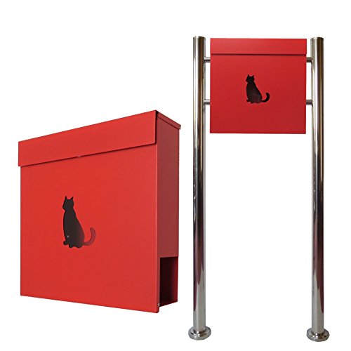 お洒落なモダンデザイン郵便ポスト:お蔭様で年間販売2万個を達成♪ 【サイズ】(ポスト最大部)巾370x高さ365x奥行110mm 【投函口】約335x35mm (スタンド)巾500x高さ1200mm 【付属品】高級キーホルダー1個、カギ2本、アンカープラグ4本、ネジ4本、ゴム栓4個、スタンドセット1式 【重量】1セット約7kg 【素材】(ポスト本体)めっき鋼板 (スタンド)プレミアムステンレス 【仕上げ】(ポスト本体)レッド赤色(猫モチーフ) (スタンドカラー)シルバーステンレス色 【仕様】スタンドタイプ、A4サイズ、前いれ、前だし、縦開き、大容量 【特徴】 カギ付き★安心♪カギなしでもご使用可能★便利♪ 洗練デザイン★錆びにくい加工 シンプル・取り付け簡単♪マグネット式・使い勝手抜群 大きいサイズ★厚い通販カタログ数冊も入る大容量 【製造メーカー情報】:本場ヨーロッパモダンデザイン郵便ポスト専門製造工場。 【ご注意】 鍵が共通しないので、紛失しないでください