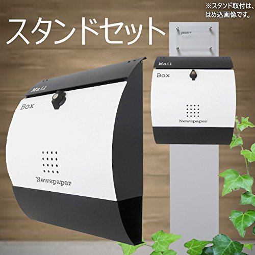 郵便ポストスタンド付 壁掛けバイカラー白黒色ポストpm272s-pm037