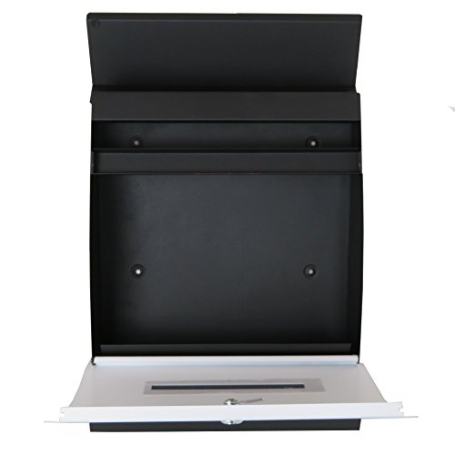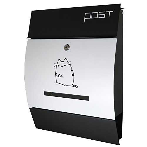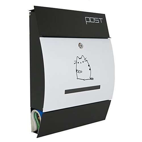 お洒落なモダンデザイン郵便ポスト:お蔭様で年間販売2万個を達成♪ 【常時500種類・5万個以上の在庫があり、即出荷致します!】 【サイズ】(最大部)巾350x高さ450x奥行100mm 【投函口】約330x35mm 【付属品】高級キーホルダー1個、カギ2本、アンカープラグ4本、ネジ4本、ゴム栓4個 【重量】1セット約3kg 【素材】めっき鋼板+ステンレス 【仕上げ】(本体)ブラック 黒色;(フロントパネル)ホワイト白色・猫柄 【仕様】壁付けまたはスタンド、A4サイズ、前いれ、前だし、大容量♪ 【特徴】 カギ付き★安心♪カギなしでもご使用可能★便利♪ 洗練デザイン★錆びにくい加工♪ シンプル・取り付け簡単♪マグネット式・使い勝手抜群♪ 大きいサイズ★厚い通販カタログ数冊も入る大容量♪ 【製造メーカー情報】:本場ヨーロッパモダンデザイン郵便ポスト専門製造工場。 【ご注意】鍵が共通しないので、紛失しないでください♪ 従来品との違い: 1.酸性雨から錆防止と、手垢などの汚れを掃除しやすいため、ポストの表と裏隅々までは塗装仕上♪ 2.マグネット式、カギを使わなくてもご使用可能♪