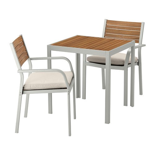 SJALLAND シェランド テーブル+アームレスト付きチェア2脚 屋外用, ライトブラウン, フローソーン/デューヴホルメン ベージュ 692.652.10