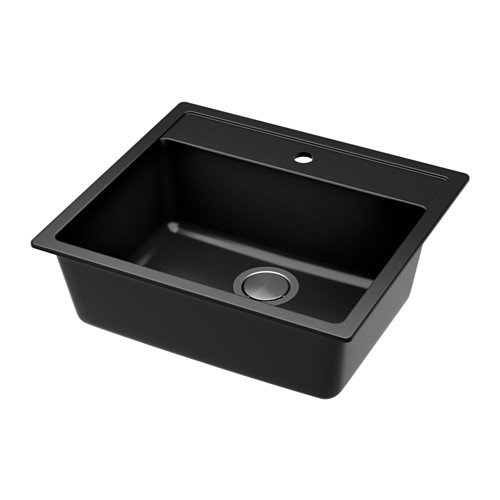 HALLVIKEN はめ込み式シンク 1ボウル, ブラック, 合成石英 991.576.43