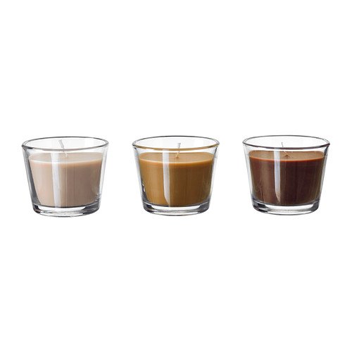 香り付きキャンドル グラス入り アロマキャンドル ブラウン系ベージュ 3点セット[当店オリジナルステッカー付]