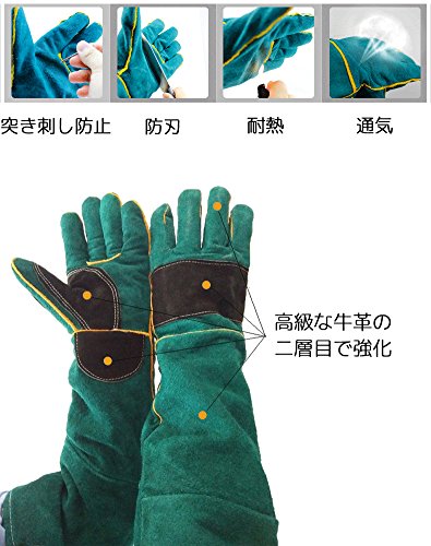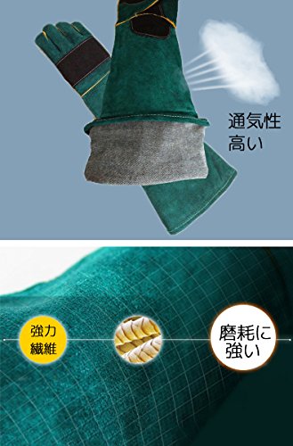 IKENOKOIペット お手入れ手袋 動物取扱 園芸用手袋 バラ手袋 牛革製 腕全体保護 引っ掻きや噛みつき防止 園芸作業 耐熱 厚手 磨耗に強い ロング60cm(グリーン)