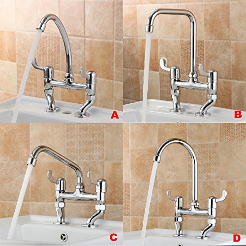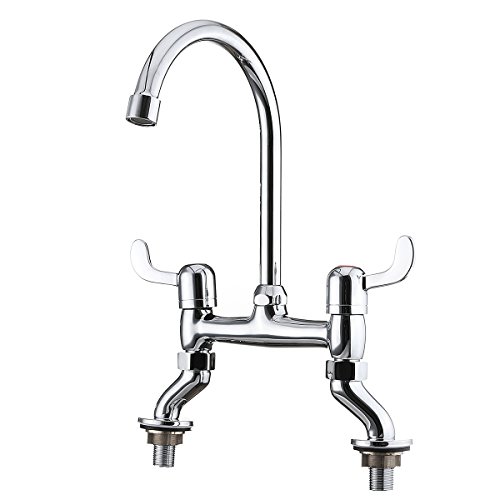 ILS - Hot Cold Water Dispenser Basin Sink 360 Degree Swivel Dual Lever Deck Mount Spout Faucet