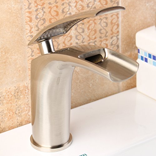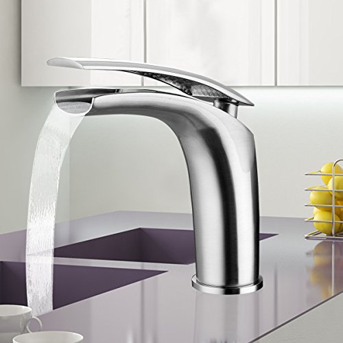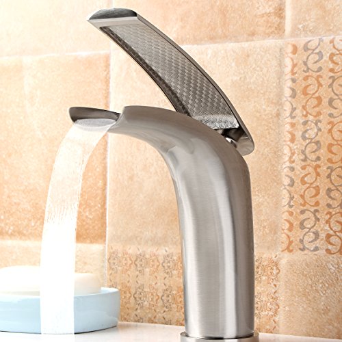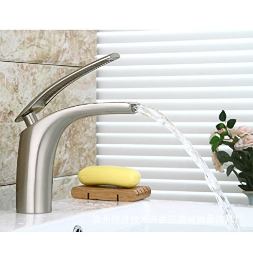 ILS - Copper Waterfall Faucet Sliver Bathroom Single Handle Faucet Vanity Sink Basin Mixer Tap