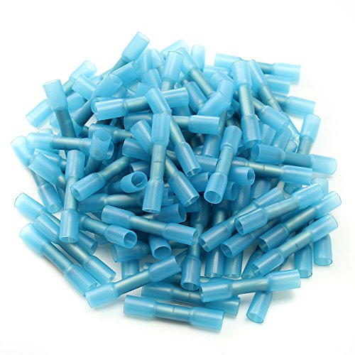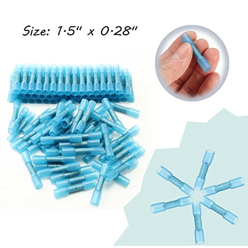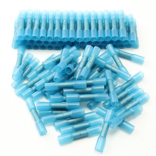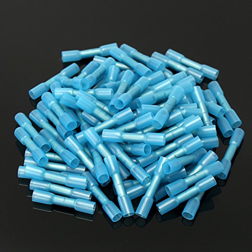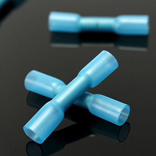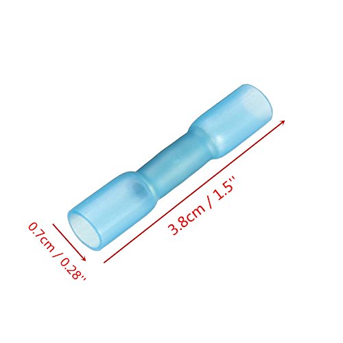ILS - 100 pieces 16-14AWG Insulation Blue Heat Shrink Butt Electrical Terminal Connector