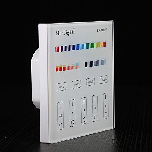 Specifications:Product Name:4-Zone RGB+CCT Smart Panel RF ControllerModel No.:T4Voltage:AC110/220VTransmission Frequency:2400-2483.5MHzModulation Method:GFSKTransmitting Power:6dBmControl Distance:30mWorking Temperature:-20 -60???Panel Size:86*86mmPackage Included:1 X Mi Light RF Controller