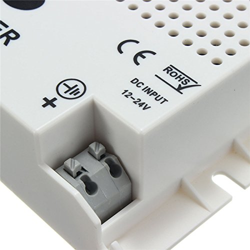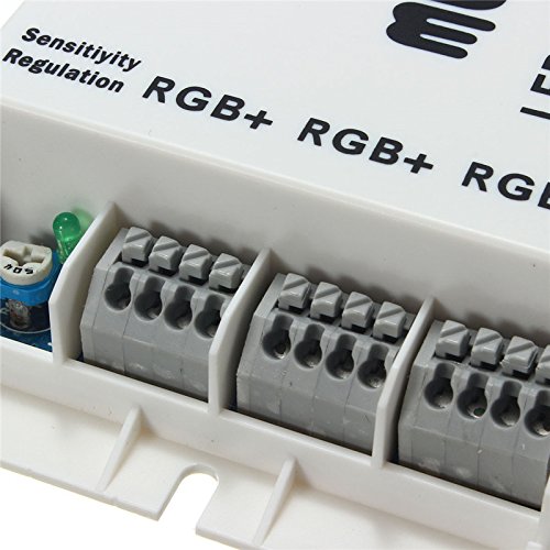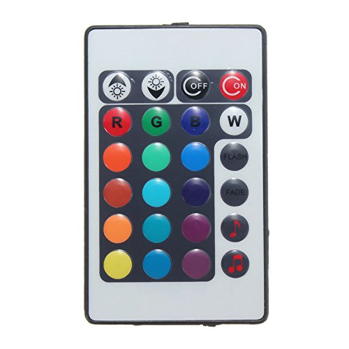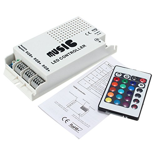 Description:This remote controller can control the RGB led light brightness,speed of fade & flash programs, turn ON and OFF, this new sound sensitive IR LED controller for RGB strip light can select 16 colors and 4 colors change programs.It can adjust the brightness and speed of colors, and the color of the light will FLASH/FADE according to the beat of music.The remote controls all of the functions by sending an IR (infrared) signal to the controller. This remote will work only with the controller. Batteries are included with the remote.RGB Sound Sensitive Music Color ChangerThis music color changing LED light controller is Sound Sensitive&is the easiest and fastest way to add color to any environment. Using the latest in LED color technology. Just screw it into any standard wires connector and turn it on.Specifications:Connection mode: Common Anode(+)Input: DC12-24VControl Distance: 8-10mMax Output: 12V 6A 72WMax load current: 2A each ChannelsWorking Temperature: -20°C-60°CSound Control: 70DBPackage included:1x Remote control1x Controller1x User Manual