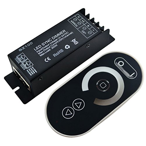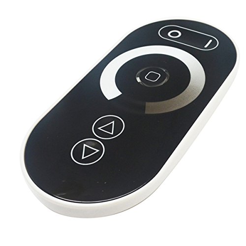 Description:The rf touch dimmer,adopt the most advanced PWM (Pulse Width Modulation) digital dimming technology, especially design for single color led strip.Adopt full touch RF remote control. 5 function buttons and 1 dimming ring in the center, all buttons are in the touch form, and the dimming ring has 128 levels in different brightness value.Particularly, there is a sense light in the remote control center. It shows the exactly light which was be touched.As the led strip is the same brightness level. Further, there are 3 dynamic modes in the mode button, and the speed is adjustable.In order to achieve the market need, the synchronization work of more lamps, it is designed the conjunction-sync-work function with RJ45 connecter, user-friendly.Specification:Working voltage:DC12-24VWorking temperature:-20-60???Output power:12V≤300W, 24V≤600WOutput current:≤ 25A*1channelConnecting mode:common anodeOutput gray:256 levelsFrequency:433.9MHzController size:L127*W41*H32mmRemote size:L113*W55*H22mmWhy lamp does not light after power:(A)Power cord is not properly connected, or there is not output switching power supply. Connect the power cord properly or replay the power.(B)Lamp power cord is not connected or short circuit. Connect lighting power cord.Package Included:1 X LED Controller1 X Romote Touch Dimmer(3*AAA batteries are included)1 X English User Manual
