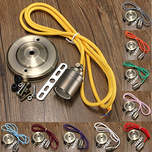 Specification:-Voltage: 110-220V-Base type: E27/E26-Lamp holder material: fine copper-Wire color: Orange; Pink+White; Black+White; Amaranth; Golden yellow; Silver; Dark green; Red; Blue+White; PurpleFeatures:- This style of fitting is perfect for showcasing our range of filament light bulbs and is the latest trend in both homes and commercial settings.- Our fitting is made up of 2 metres of 3 core handcrafted Italian fabric cable and a solid brass E27 screw lampholder.- Available in a choice of 10 colours.- Designed to fit standard E27/E26 fittings.- Wide Application such as Commercial and exhibition locations, Hotel, Factory, office, house, metro and other placesNOTE:1.Due to the difference between different monitors, the picture may not reflect the actual color of the item.2.Please allow 1-3mm errors due to manual measurement.3.Bulbs are not included.Package included:1x Pendant Light ( Bulbs are not included )