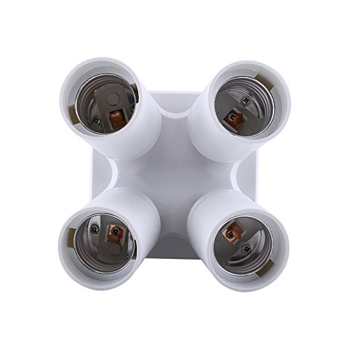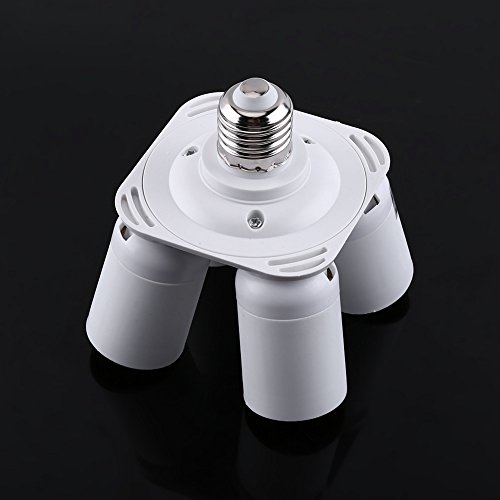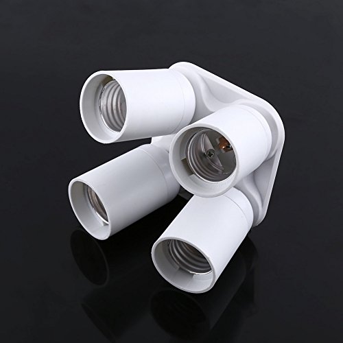 Specification:Type:E27 to 4 E27Voltage:AC100-240VCurrent:6AHeat resist temperature:200???Wattage of each socket: ≤60WMaterial:PBT Feature:The socket type is E27, so it is compatible with standard light bulb E27.Allowing 4 or 3 bulbs installed in one single socket at the same time, easy to increase lighting intensity.A must have for anybody who needs to convert a dull & gloomy place into a place shining with light & brightness.Suitable for using with fluorescent bulbs in photography, home or other places. Package included:1*one E27 to four E27 bulb adapter(bulb is not included)